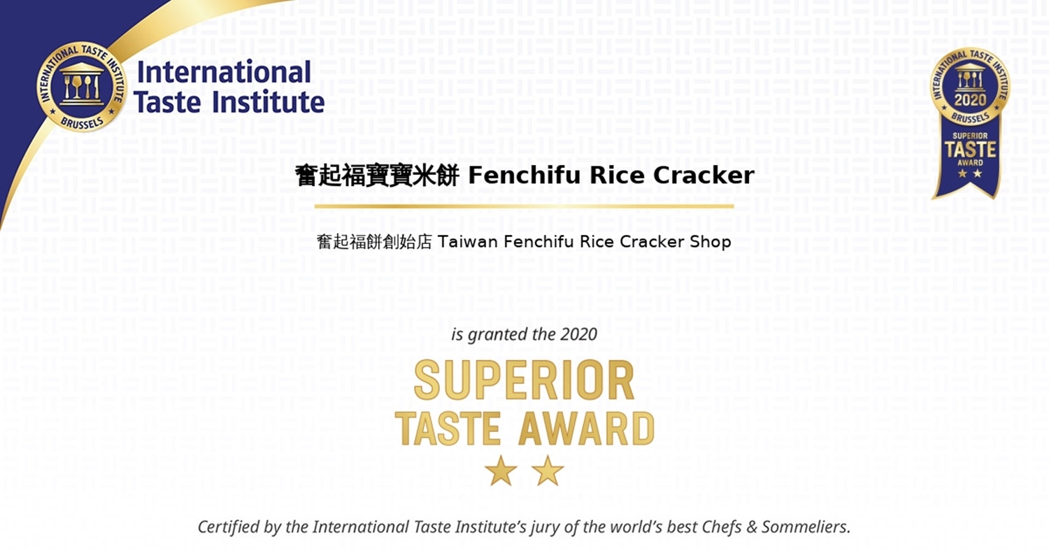 ITQI (國際風味暨品質評鑑大賽)有「食品界米其林」之稱,每年在比利時舉行並邀請米其林星級主廚、美食專家等組成評審團隊,以盲測的方式評鑑來自全球上千件的產品,過程中評審們沒有彼此交談的機會,而是依照產品外觀、香氣、口感、質地、後味等評分,過程極為嚴格,往年都是大廠才有能力獲得獎章,奮起福能從全球131個國家中脫穎而出,連續兩年皆榮獲世界評比的殊榮,驕傲地將台灣創新米食帶去國際舞台,告訴大家國際認證的米餅就在嘉義!