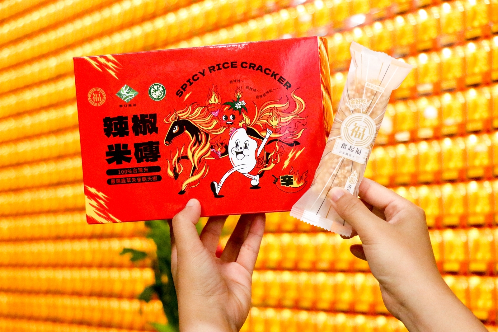 此次與奮起福米餅攜手推出【火馬辣米磚】,以鹿草熱情土地為靈感,將香辣與米香完美結合,創造出專屬鹿草的在地風味。
