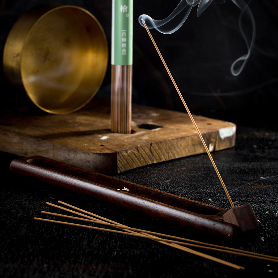 木質臥香座採用花梨木製作,臥香角度可以調整。